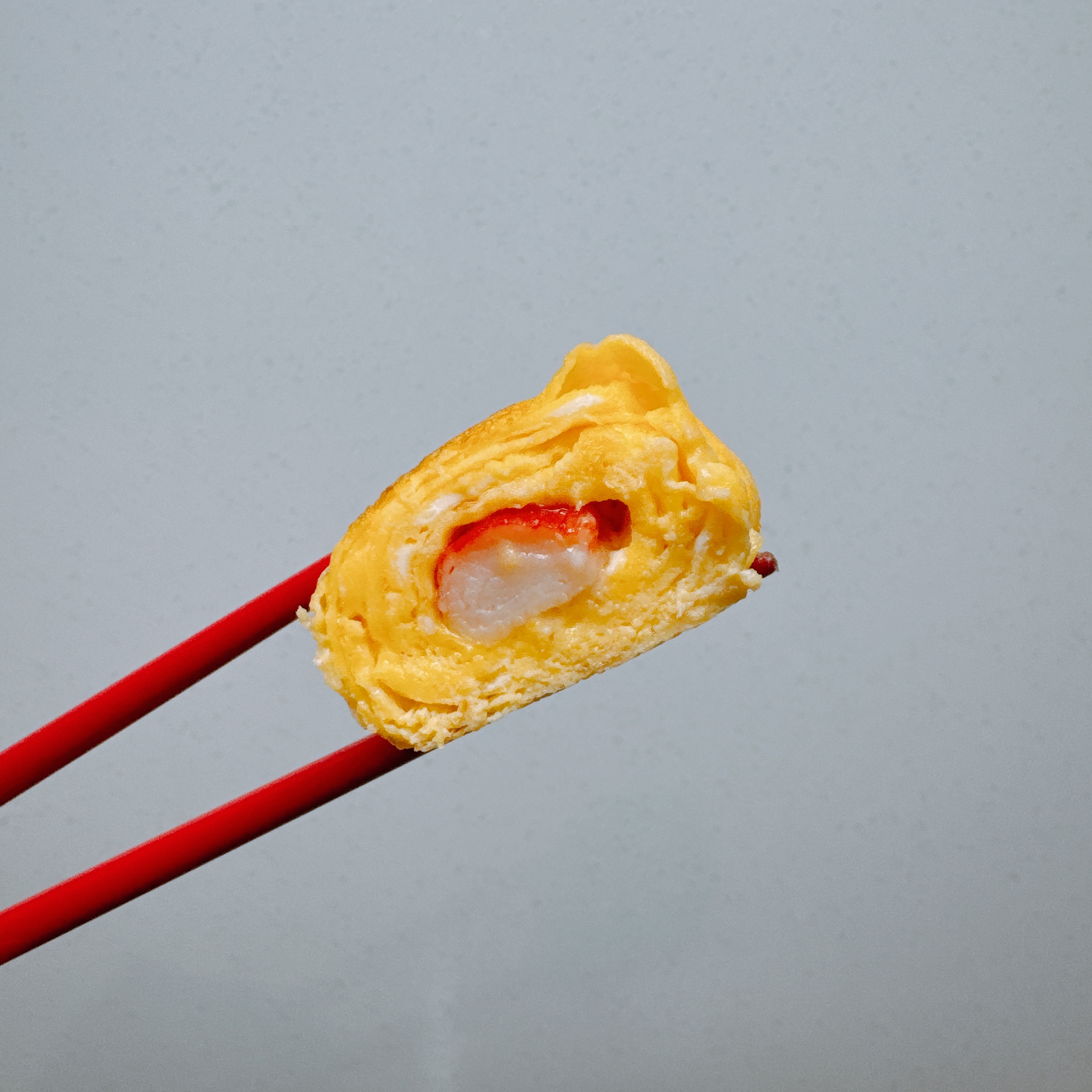 2024年200個目のたまごやき。この日もカニカマが巻かれている。